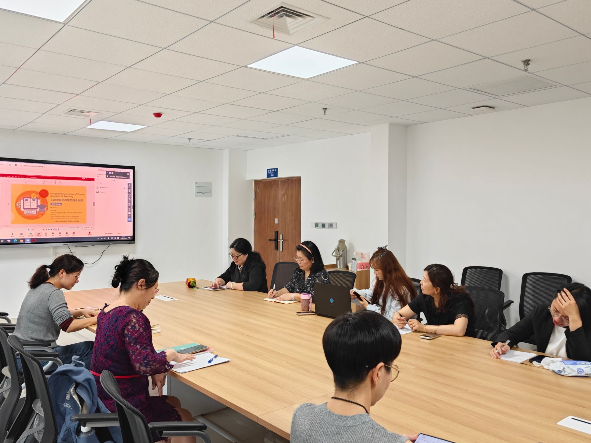 9月25日,304永利集团组织的雅思教学交流活动顺利进行。本次交流特别邀请河南科技大学国际合作与交流部(港澳台事务办公室)执行部长(主任)李文科老师主讲,核心内容聚焦“主题式雅思教学融合创新”,公司经理肖巧玲及雅思教研室全体教师全程参与交流。